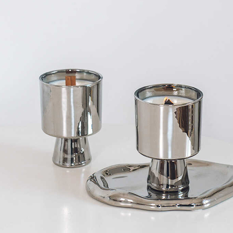 เทียนหอมตกแต่งทำจากโลหะหรูหราเทียนหอมระเหยก้านไม้ไส้เทียนหอมระเหยขี้ผึ้งถั่วเหลืองเทียนหอมใช้ในบ้าน