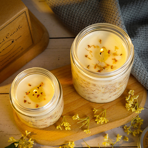 ขวดแก้วเทียนหอมเทียนหอมขี้ผึ้งถั่วเหลืองหรูหราพร้อมดอกไม้แห้งสำหรับเป็นของขวัญแต่งงาน