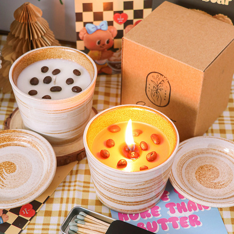 ชุดเทียนหอมระเหยสำหรับตกแต่งบ้านชุดเทียนเซรามิกเทียนหอมระเหยขี้ผึ้งถั่วเหลืองแบบกำหนดเองของขวัญ