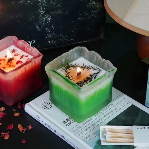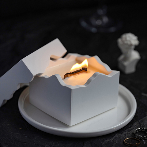 เทียนหอมระเหยสีขาวทรงสี่เหลี่ยมแบบกำหนดเองเทียนหอมระเหยขี้ผึ้งถั่วเหลืองเทียนหอมพร้อมฝาปิด