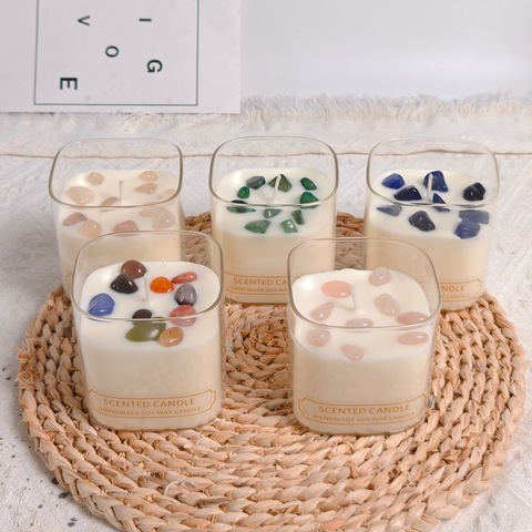 เทียนหอมทำจากขี้ผึ้งถั่วเหลืองทำด้วยมือทำจากหินคริสตัลทำด้วยมือหรูหราของขวัญตกแต่งบ้านฉลากตามต้องการ