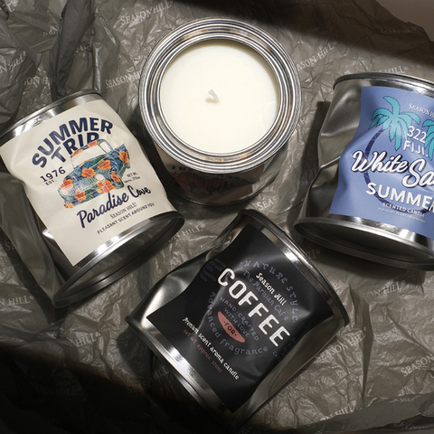 ขวดกระป๋องเทียนทำจากโลหะรูปทรงแปลกพร้อมฝาเทียนหอมกลิ่นหอมหรูหราฉลากส่วนตัวตกแต่งบ้าน